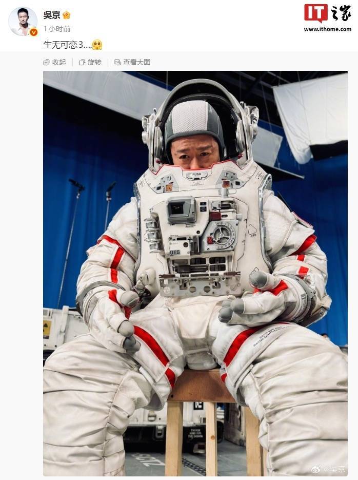 吴京分享国产科幻大片《流浪地球 3》宇航服定妆照